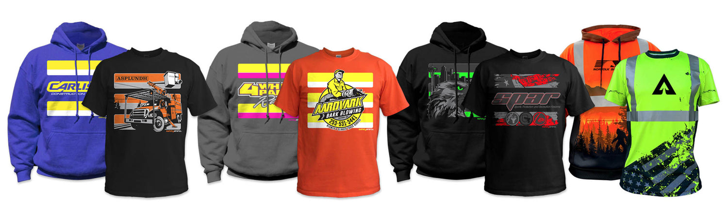 We provide custom orders of SafetyShirtz for companies of all sizes. We can use one of our existing designs or create a new one specific for your industry. Custom hi-vis shirt orders start at 48 pieces and require the same front and back design/print, that can be a mix of t-shirts and hoodies. Starting at 96 pieces you have the option of a different front and back design/print.