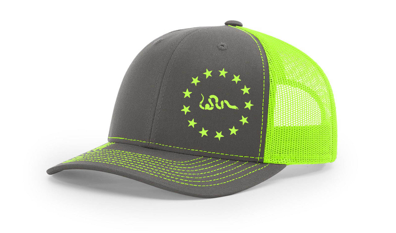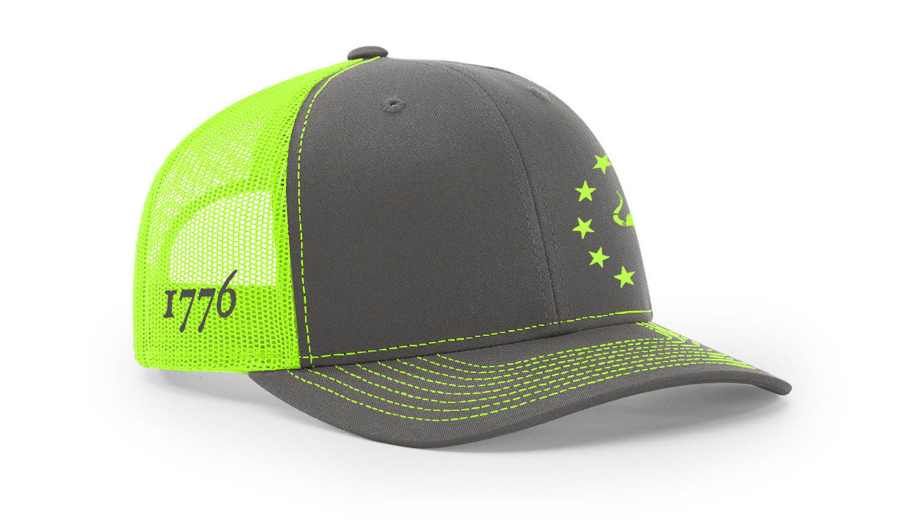 1776 Betsy Ross - Richardson Snapback Hat - Charcoal/Yellow (Safety Green) Mesh