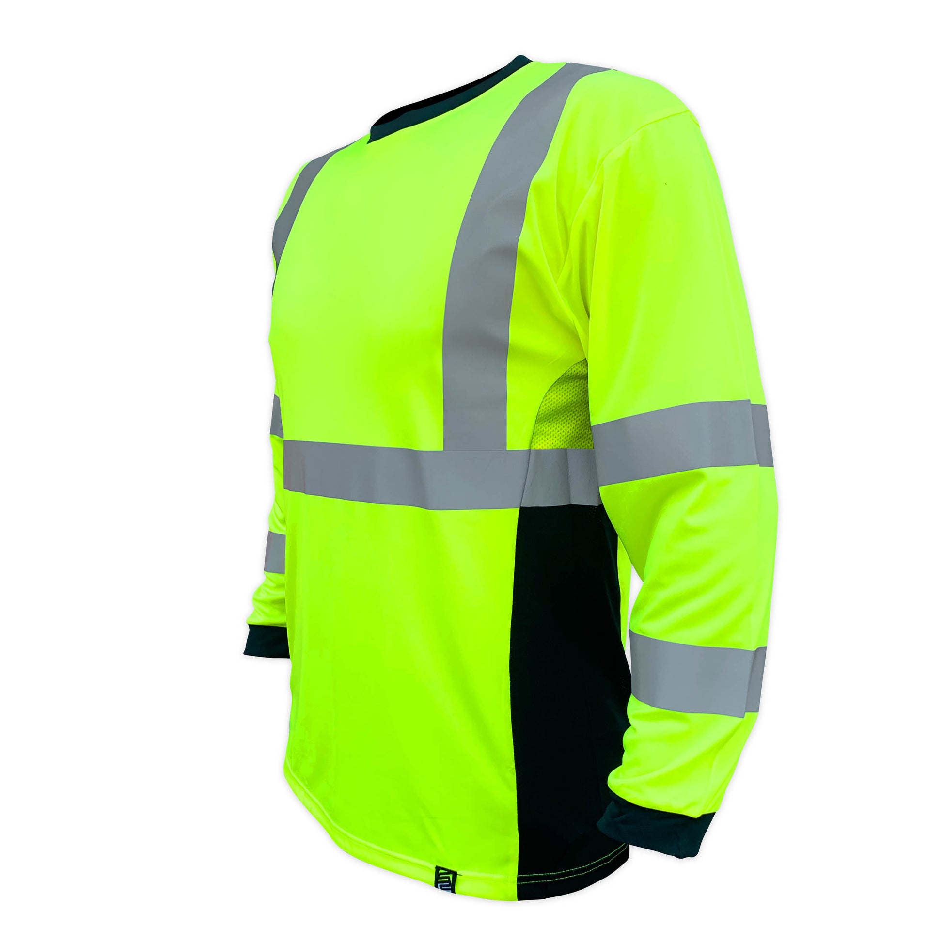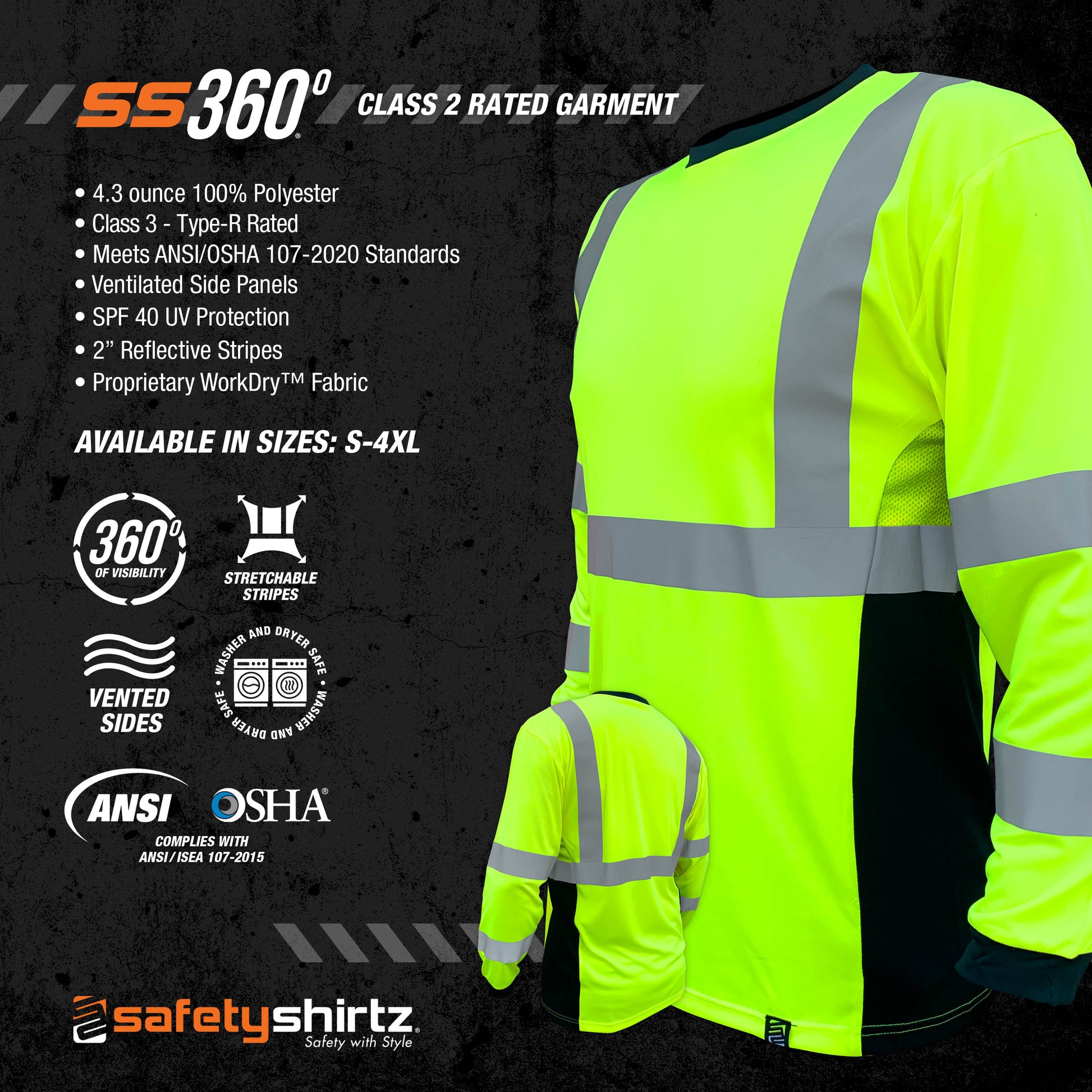 No matter the job, we've got you covered in our new line of SS360 ANSI rated safety gear. With our Yellow (Safety Green) SafetyShirtz long sleeved t-shirt you can be safe on the jobsite and still show some style with the accented black sides and collar. Our SS360 t-shirts are built for the warm weather, with moisture wicking performance polyester to help wick the sweat away as well as UPF 40 UV Protection. Also added to this line are mesh side panels that allow for extreme ventilation. Elevate Your Workwear!